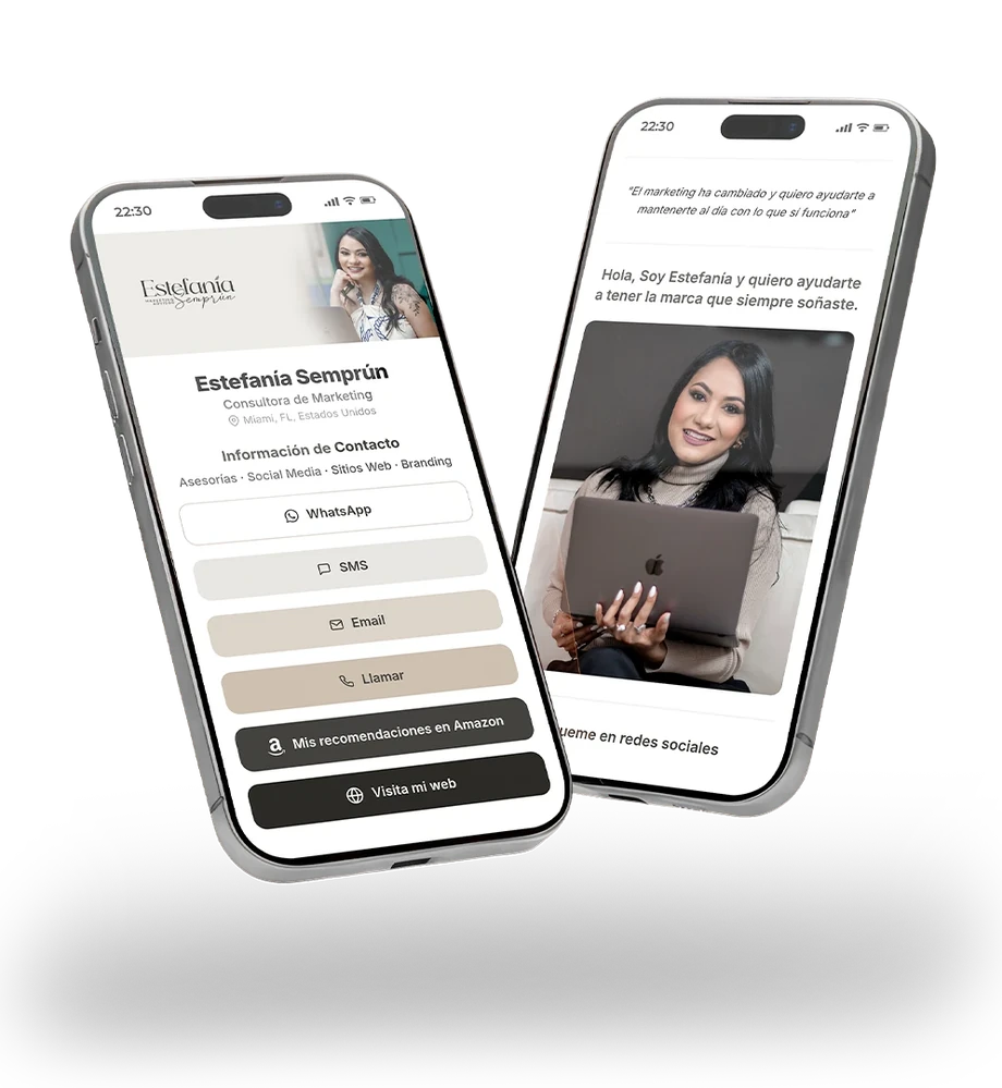 Tu tarjeta deja de ser solo un dato de contacto y se convierte en un showroom digital donde tus clientes ven, conocen y confían en ti antes de escribirte.